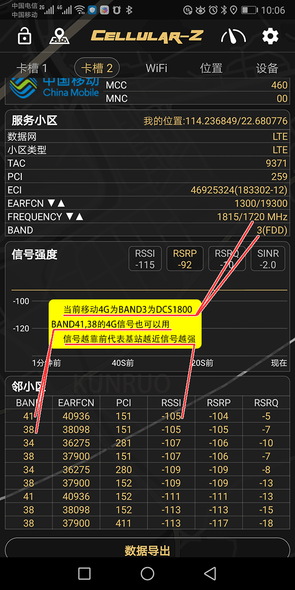 電信的2G沒有關(guān)閉,所以測(cè)試出的信號(hào)是電信4G的信號(hào)。